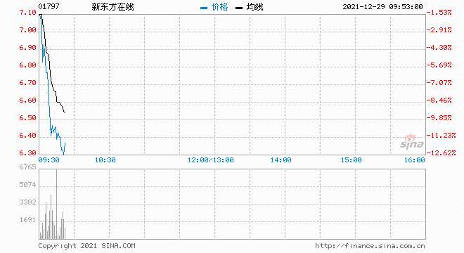 12月29日消息,新東方在線股價跳水跌近11%,現報6.43港元。昨日新東方正式開啟直播帶貨。