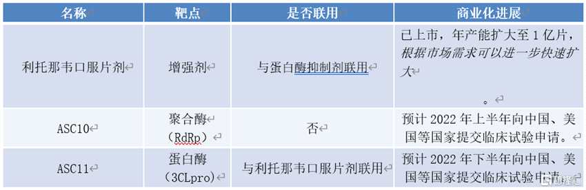 筆者注意到,1月3日,歌禮制藥宣布公司已擴(kuò)大用以多種抗病毒蛋白酶抑制劑(包括直接抗新冠病毒藥物Paxlovid(Nirmatrelvir+利托那韋)的藥代動(dòng)力學(xué)增強(qiáng)劑的利托那韋口服片劑年產(chǎn)能至1億片。同時(shí)還自主研發(fā)了兩款口服直接抗新冠病毒(SARS-CoV-2)候選藥物ASC10和ASC11,預(yù)計(jì)將分別于今年上半年和下半年向中國、美國等國家提交臨床試驗(yàn)申請(qǐng)。