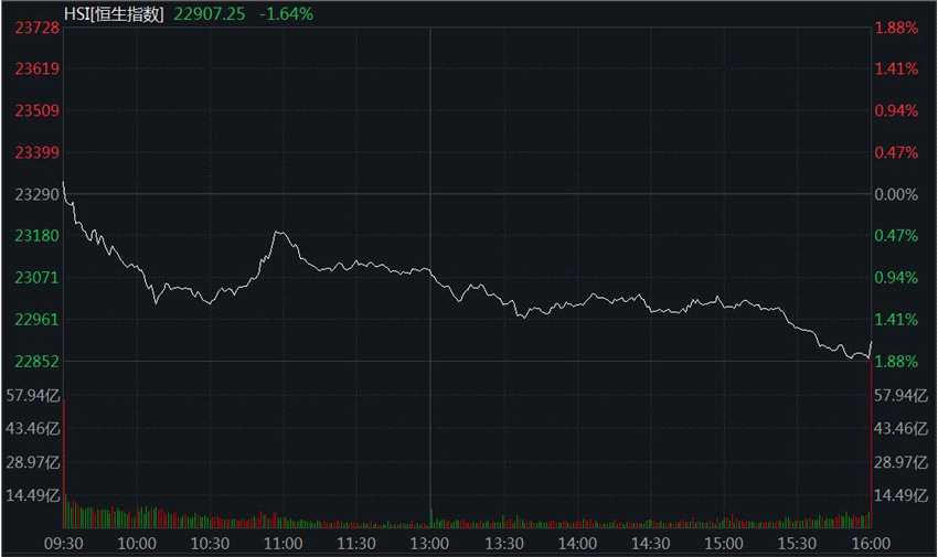 恒指單邊走弱跌1.64%失守23000點 科技指數(shù)重挫4.63%