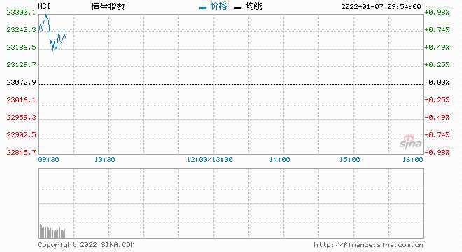 1月7日消息,美股隔晚繼續(xù)出現(xiàn)調(diào)整,10年期債息突破1.7厘。今日開盤,恒指高開1.07%,報23318.92點,國企指數(shù)漲0.74%,紅籌指數(shù)漲0.04%。