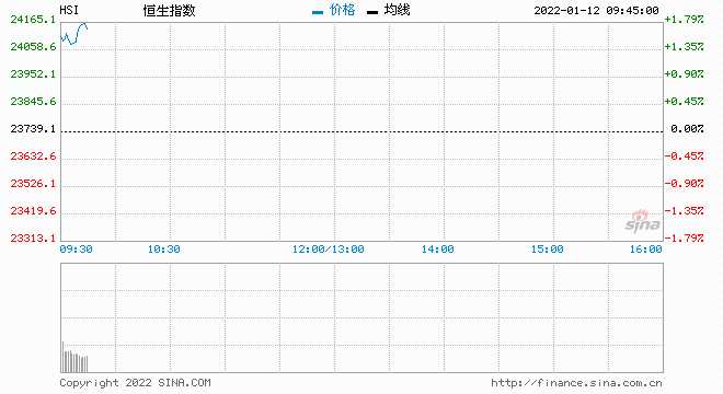 1月12日消息,美股周二收高,科技股連續(xù)第二天反彈。今日港股開盤,恒生指數(shù)漲1.39%,報24069.52點,國企指數(shù)漲1.48%,紅籌指數(shù)漲1.25%。