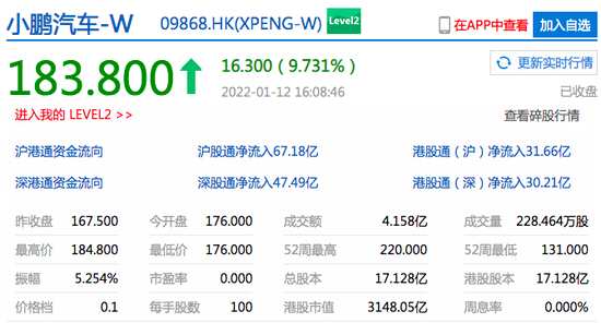 摘要: 查看最新行情新浪科技訊1月12日下午消息,香港恒生指數(shù)收漲2.79%,恒生科技指數(shù)大漲4.99%,京東港股收漲近11%,港股美團(tuán)收漲逾9%。汽車股大漲,小鵬汽車港股收漲逾9%,理想汽車收漲超8%。