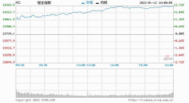 摘要: 1月12日消息,美股周二收高,科技股連續(xù)第二天反彈。今日港股高開高走,恒指重返24000點(diǎn),創(chuàng)去年10月7日以來(lái)最大單日漲幅。截至收盤,恒生指數(shù)漲2.79%,報(bào)24402.17點(diǎn),