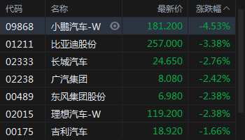 快訊:汽車股集體走低 小鵬汽車跌近5%比亞迪股份跌超3%