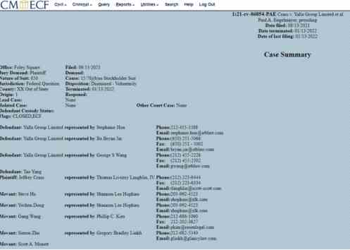 以下是本案Case Summary頁面的截圖(具體信息可見:http://ecf.nysd.uscourts.gov/),顯示案件已經(jīng)是“CLOSED”,并標(biāo)注案件的結(jié)果是“Dismissed – Voluntarily”, 而案件的終止日期為“01/13/2022”。