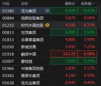 快訊:內(nèi)房股集體大漲 龍光集團(tuán)漲超9%融創(chuàng)中國漲近7%
