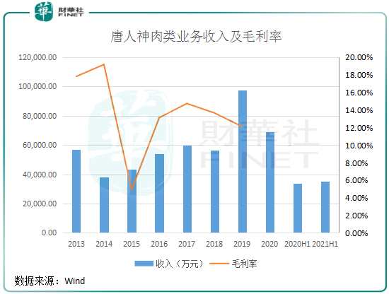 上圖可以看到,近些年來受益于唐人神在肉類業(yè)務(wù)方面加大投入,整體營收增長較快。按照公司計劃,到2031年,肉制品業(yè)務(wù)(包括餐飲品牌)收入要達到300億元,較2020年增長超過40倍,野心很大。