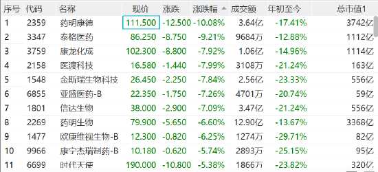 港股醫(yī)藥股連續(xù)重挫:藥明康德跌超10%,泰格醫(yī)藥跌超9%