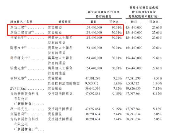 根據(jù)招股書,創(chuàng)新工場(chǎng)持股27.61%,中金公司持股15.37%,雇員激勵(lì)平臺(tái)新輝智奇持股8.42%,雇員激勵(lì)平臺(tái)新諾智合持股6.85%。創(chuàng)新工場(chǎng)、創(chuàng)新工場(chǎng)育成、汪華及陶寧女士合共持有創(chuàng)新奇智已發(fā)行股本約30.01%(分別為26.24%、1.68%、1.68%及0.42%),緊隨全球發(fā)售后持股27.61%。創(chuàng)新工場(chǎng)及創(chuàng)新工場(chǎng)育成由汪華、陶寧女士、郎春暉女士及張鷹先生通過其簽署的一致行動(dòng)協(xié)議共同控制。