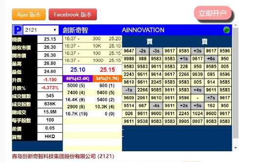 創(chuàng)新奇智將于明日赴港上市,今日暗盤大跌4.4%,不計(jì)手續(xù)費(fèi),每手浮虧115港元,公司股東背景實(shí)力雄厚,包括李開復(fù)的創(chuàng)新工場(chǎng),中金公司以及軟銀集團(tuán)等。