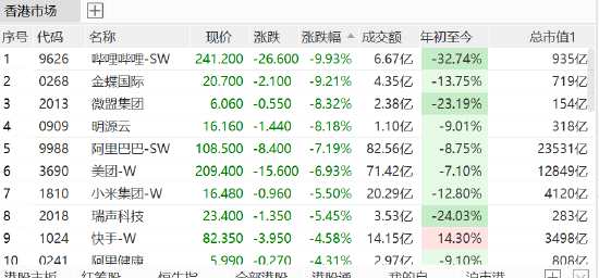 收評(píng):港股恒指跌1.99%恒生科指跌3.8% B站跌10%創(chuàng)新奇智跌25%