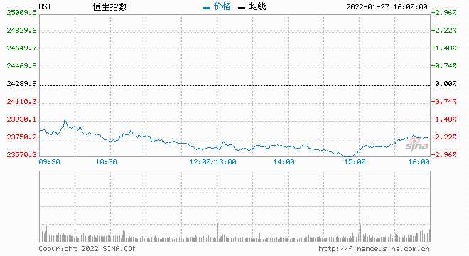 1月27日消息,美聯(lián)儲(chǔ)強(qiáng)調(diào)很快就會(huì)適當(dāng)?shù)靥岣呗?lián)邦基金利率,并表示將在加息后開始縮減資產(chǎn)負(fù)債表。美聯(lián)儲(chǔ)發(fā)表政策聲明后,美聯(lián)儲(chǔ)基金期貨仍暗示2022年將加息4次,隔夜美股尾盤大幅跳水。今日早盤,恒指低開低走,午后恒指繼續(xù)下探,截至收盤,恒指跌1.99%,報(bào)23807點(diǎn),國企指數(shù)跌2.6%,紅籌指數(shù)跌1.4%。