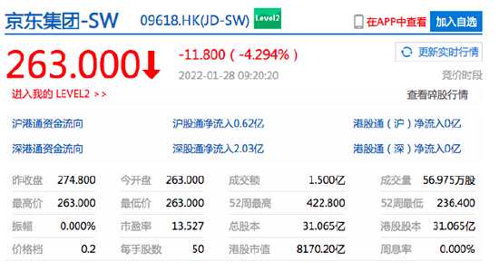 小鵬汽車港股跌超8%京東港股開跌超4%
