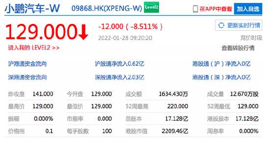摘要: 查看最新行情新浪科技訊1月28日上午消息,香港恒生指數(shù)開盤漲0.05%。恒生科技指數(shù)跌0.43%,汽車股走低,小鵬汽車港股開跌超8%,理想汽車港股開跌超3%。京東港股開跌超4%,港股美團跌近3%,