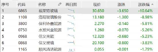 光伏概念股遭遇重挫:福萊特玻璃跌超10% 洛陽玻璃跌9%