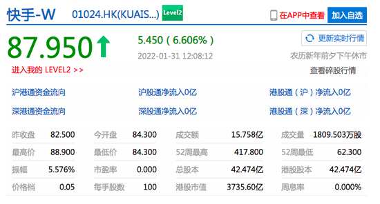 香港恒生指數收漲1.07%港股快手收漲超6%