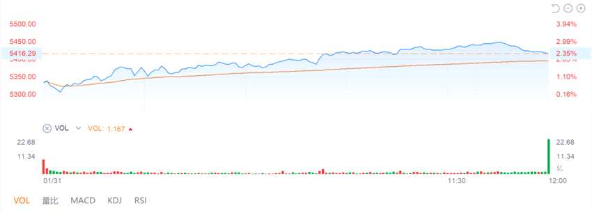 回到除夕這半天市況,恒生指數(shù)漲1.07%,報(bào)收23802.26,國(guó)企指數(shù)漲1.7%,報(bào)收8349.95%,恒生科技指數(shù)漲2.35%,報(bào)收5416.29.