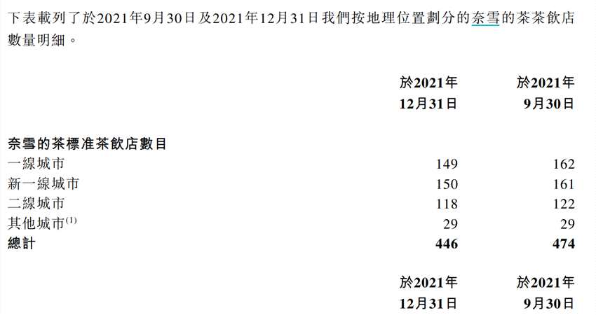 “奈雪的茶”《2021年第4季度運營情況》公告截圖