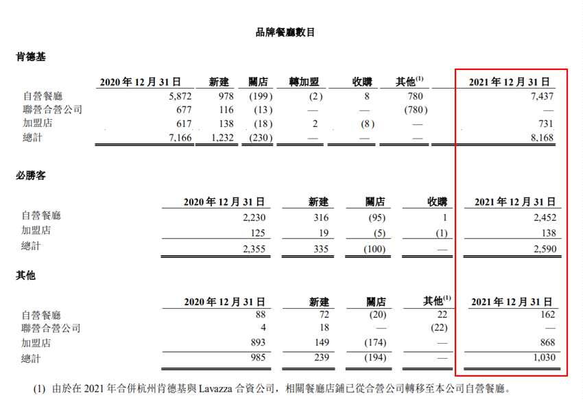 分品牌看,2021年肯德基經(jīng)營(yíng)收入70.03億美元,當(dāng)中餐廳收入同比增長(zhǎng)21%至68.16億美元;必勝客經(jīng)營(yíng)收入21.09億美元,當(dāng)中餐廳收入同比增長(zhǎng)22%至20.92億美元。截至2021年底,肯德基門店數(shù)量為8186家,必勝客2590家,且有其他品牌門店1030家。