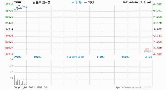 摘要: 2月10日消息,百勝中國(guó)漲7.14%,現(xiàn)報(bào)372.20港元,最新市值1564.75億港元。公司將于3月29日派發(fā)季度股息每股0.12美元。財(cái)報(bào)顯示,百勝中國(guó)2021年全年實(shí)現(xiàn)總收入98.5億美元,