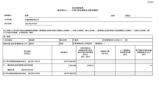 中國移動:2月10日耗資約4.22億港元回購730.35萬股