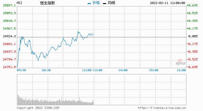 2月11日消息,美股周四收跌,科技股跌幅領(lǐng)先。美國(guó)1月CPI創(chuàng)40年來最大增幅顯示通脹炙熱,推動(dòng)10年期美債收益率突破2%關(guān)口,強(qiáng)化了市場(chǎng)對(duì)美聯(lián)儲(chǔ)加速收緊貨幣政策的預(yù)期。今日港股恒指開跌0.35%,隨后翻紅,截至午盤,恒生指數(shù)漲0.08%,報(bào)24943.65點(diǎn);國(guó)企指數(shù)漲0.35%,紅籌指數(shù)漲0.75%。