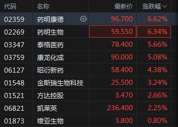快訊:醫(yī)藥外包概念股上漲 藥明康德漲近7%藥明生物漲超6%