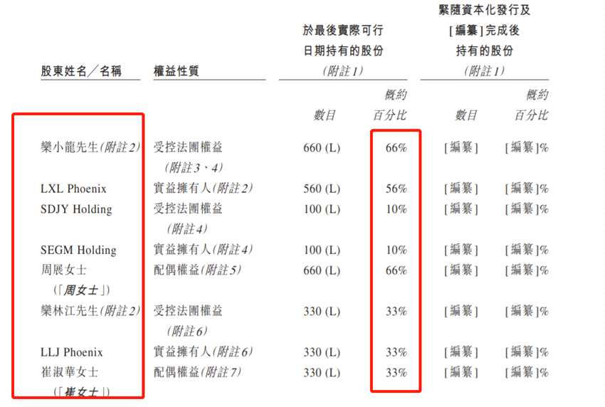 股東結(jié)構(gòu)上,IPO后,欒小龍先生、LXL Phoenix、SEGM Holding及SDJY Holding為控股股東。