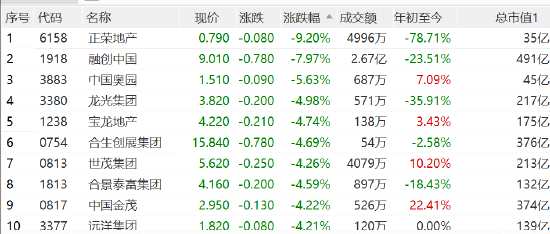 內(nèi)房股持續(xù)走跌:正榮地產(chǎn)大跌超9%,融創(chuàng)中國(guó)跌8%