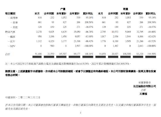 3月3日消息,比亞迪股份:2月新能源汽車銷量88283輛,上年同期銷量為10355輛。
