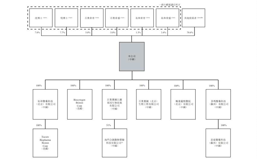IPO前,沈月雷博士持股為7%,倪健博士持股為7.7%,百奧常青、百奧常盛分別持股為5%,佑和常盛持股為3.4%,佑和常青持股為1.3%,國(guó)投上海持股為11.2%,星赫持股為7%;