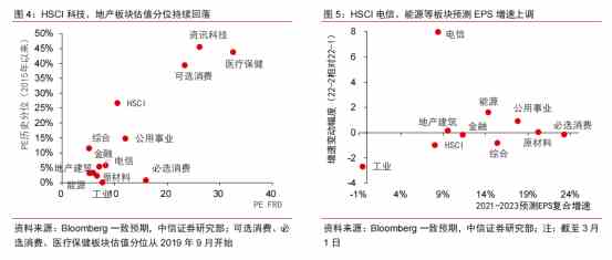 從細(xì)分行業(yè)的估值角度看,當(dāng)前電信、能源、地產(chǎn)等傳統(tǒng)經(jīng)濟(jì)板塊估值仍處于極低的歷史分位,分別為 5.6%/5.7%/0.6%,但未來兩年盈利復(fù)合增速預(yù)期過去一個月分別上調(diào) 8.0/1.6/0.2個百分點。