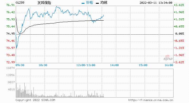 瑞銀發(fā)布研究報告稱,維持友邦保險(01299)“買入”評級,目標價101港元。
