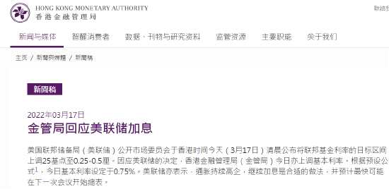 香港跟隨美聯(lián)儲加息25基點 金管局:金融系統(tǒng)及貨幣市場繼續(xù)保持有序和暢順運作
