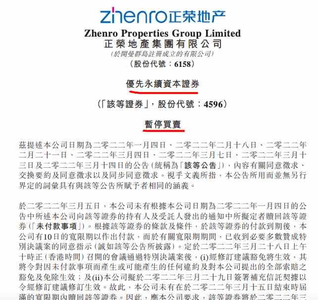 正榮稱擬召開特別決議案會議優(yōu)先永續(xù)資本證券17日起停牌