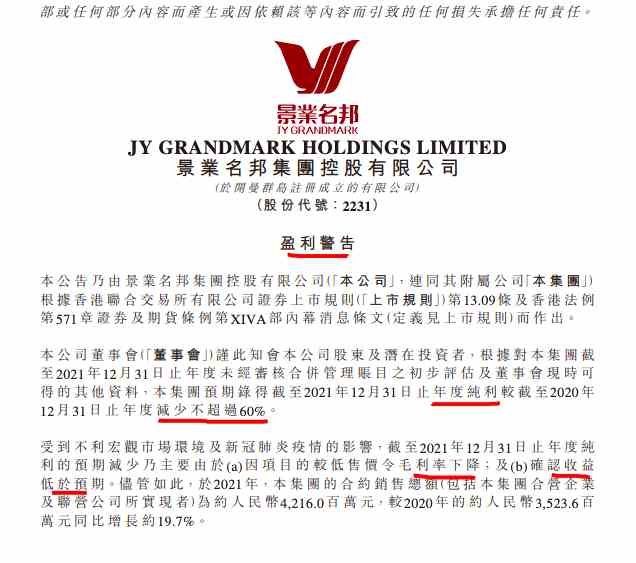 獲悉,2020年景業(yè)名邦集團(tuán)錄得純利4.78億元,如上所述,則2022年全年錄得純利至少1.91億元。