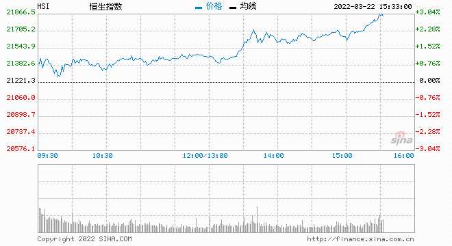 港股尾盤拉升:恒指漲幅擴(kuò)大至3% 恒生科技指數(shù)漲近5%