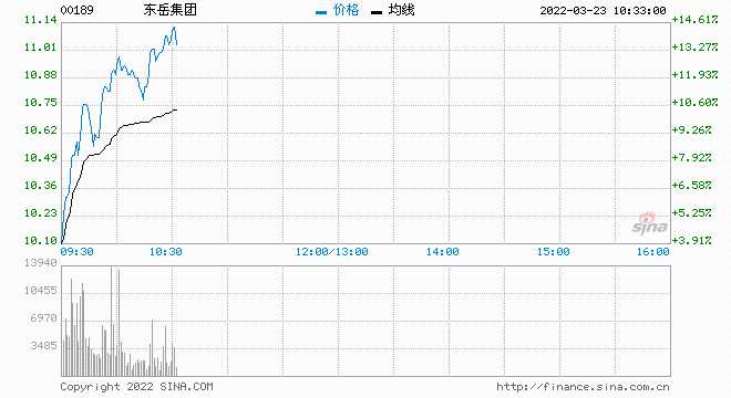3月23日消息,東岳集團持續(xù)拉升,現(xiàn)漲8.44%,現(xiàn)報10.54港元,最新市值237.54億港元。