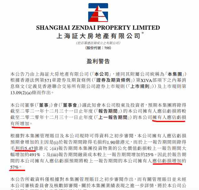 摘要: 3月23日訊:上海證大房地產(chǎn)有限公司(簡稱:上海證大,0755.HK)發(fā)布盈利警告顯示,截至2021年12月31日止年度的上海證大擁有人應(yīng)占虧損將較2020年度應(yīng)占虧損增加約57%。