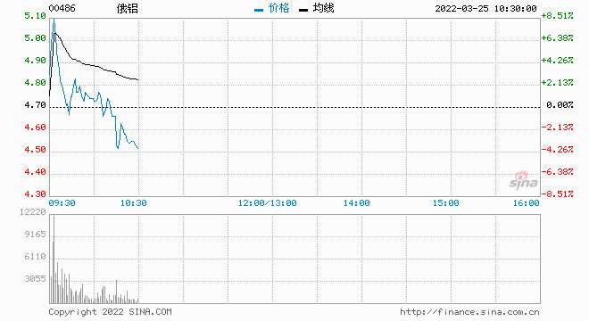 摘要: 3月25日消息,俄鋁直線拉升,盤初一度上漲10%。昨日,俄羅斯股市在關(guān)閉近一個月后開始有限度恢復(fù)交易,開盤后股指及大宗商品企業(yè)股價上漲,帶動港股上市的俄鋁股價午后直線拉升,漲幅一度超過20%,