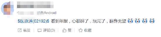 隨著醫(yī)脈通股價大跌,有股民似乎撐不住了,“看到年報,心都碎了,玩完了,翻身無望”