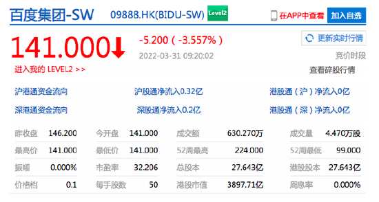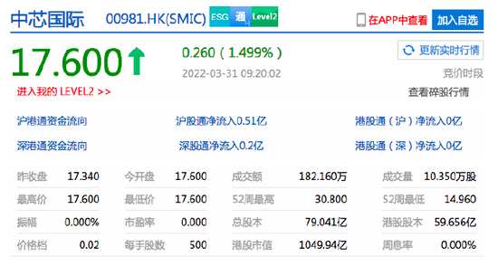 中芯國際港股開漲1.5%百度港股開跌超3%