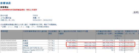 2021年4月19日,沈南鵬減持85萬(wàn)股,均價(jià)273.8港元,套現(xiàn)2.33億港元;4月27日,沈南鵬減持47.5706萬(wàn)股,均價(jià)300.3864港元,套現(xiàn)1.43億港元;5月31日,沈南鵬減持8700股,均價(jià)274.7862港元,套現(xiàn)239萬(wàn)港元;7月30日,沈南鵬減持21.1509萬(wàn)股,均價(jià)205.1187港元,套現(xiàn)4438萬(wàn)港元;8月31日,沈南鵬減持18.4萬(wàn)股,均價(jià)239.7125港元,套現(xiàn)4411萬(wàn)港元。