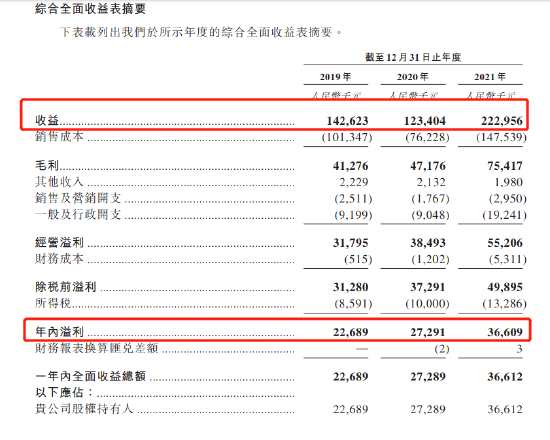 2019年至2021年,公司分別實現(xiàn)毛利4128萬元、4718萬元以及7542萬元。同期,公司實現(xiàn)年內(nèi)溢利為2269萬元、2729萬元以及3661萬元。公司毛利率由截至2020年12月31日止年度的約38.2%減少至截至2021年12月31日止年度的約33.8%,公司表示,毛利率下滑主要由于公司為增加市場份額及產(chǎn)品售價的競爭力,策略性地降低了毛利率。