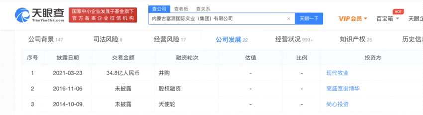 根據(jù)天眼查信息顯示,去年3月份,現(xiàn)代牧業(yè)曾經(jīng)以34.8億人民幣的交易金額并購內(nèi)蒙古富源國際。并購帶來的結(jié)果,就是財務(wù)并表后數(shù)據(jù)的增長,數(shù)據(jù)顯示,收購富源國際也為現(xiàn)代牧業(yè)的原料奶銷售量同比增加8.9%,達到159萬噸。