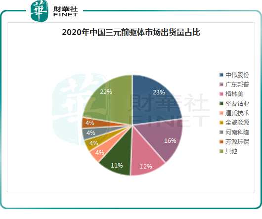從競(jìng)爭(zhēng)格局來(lái)看,全球三元前驅(qū)體市場(chǎng)主要集中在國(guó)內(nèi)幾家頭部企業(yè),2020年國(guó)內(nèi)出貨量前五名分別是【中偉股份(300919)、股吧】、廣東邦普、格林美(002340)、華友鈷業(yè)(603799)、道氏技術(shù),分別占比23.0%、15.5%、12.1%、11.2%、4.5%。