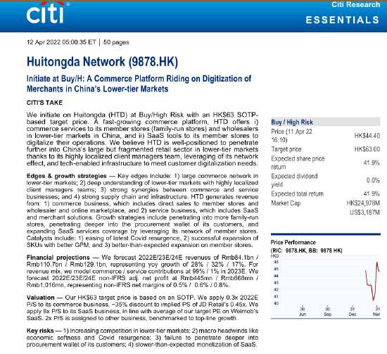 花旗:給予匯通達(dá)網(wǎng)絡(luò)買入評(píng)級(jí),目標(biāo)價(jià)為63港元