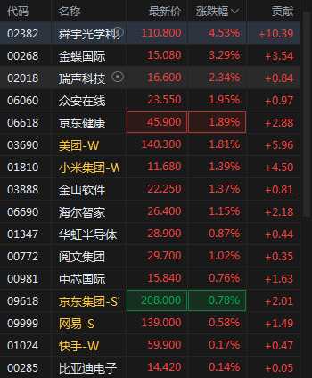 4月22日消息,恒生科技指數(shù)午后轉(zhuǎn)漲,早盤一度跌3.2%。舜宇光學(xué)科技漲近5%,金蝶國(guó)際漲超3%,美團(tuán)漲近2%,小米漲超1%.