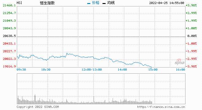 港股跌幅擴(kuò)大,恒生科技指數(shù)跌超5%,恒指跌近4%