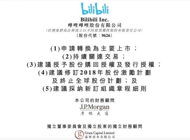 嗶哩嗶哩:將于香港聯(lián)交所及美國納斯達克雙重主要上市